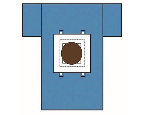 Press down to engage the adhesive, next unfold the drap side to side, then unfold to the feet then the head and finally to the arm boards, smooth down the drape and cut ports to apply suction as needed. And the drape include a 360-degree deep pouch, maintain the opening.